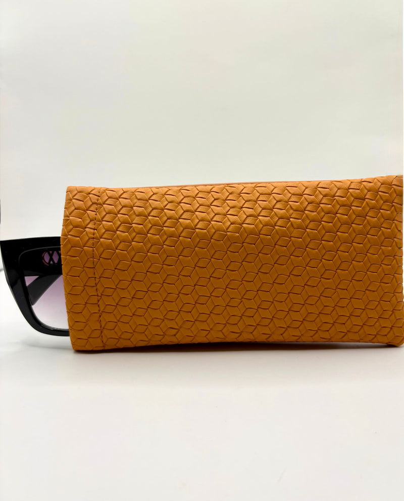 Protect your eyeglasses in style with this soft eyeglass pouch featuring an elegant braid pattern design. The gentle, cushioned interior safeguards your frames from scratches and damage during travel or daily storage. Its compact size fits easily into bags, purses, or pockets, making it the perfect companion for anyone who wears glasses. The supportive construction keeps your eyewear secure while the thoughtful braid pattern adds a touch of sophistication to your accessories collection.