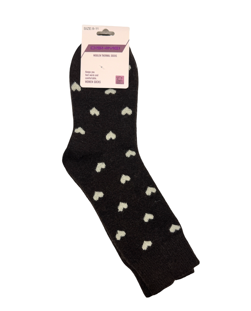 Wrap your feet in warmth and charm with these delightful heart-patterned wool blend socks. Perfect for expressing your personality while staying comfortable all day long, they combine soft, breathable wool with durable synthetic fibers for lasting wear. The playful heart design adds a touch of joy to your everyday routine, making it ideal for personal enjoyment or as a heartfelt gift. Whether you're lounging at home or heading out, these socks provide the cozy support your feet deserve. Invest in comfort that feels as good as it looks.