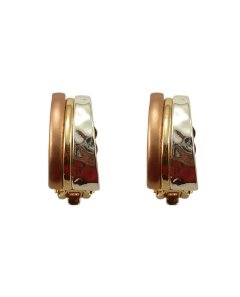Elevate your accessory game with these stunning 2-tone clip earrings. Featuring a sophisticated blend of contrasting metals, these versatile pieces transition seamlessly from day to night. The secure clip design ensures all-day comfort without piercing, making them perfect for sensitive ears or those who prefer clip-on styles. Whether you're dressing up for a special occasion or adding polish to your everyday look, these earrings deliver timeless elegance with modern flair. A must-have addition to any jewelry collection.