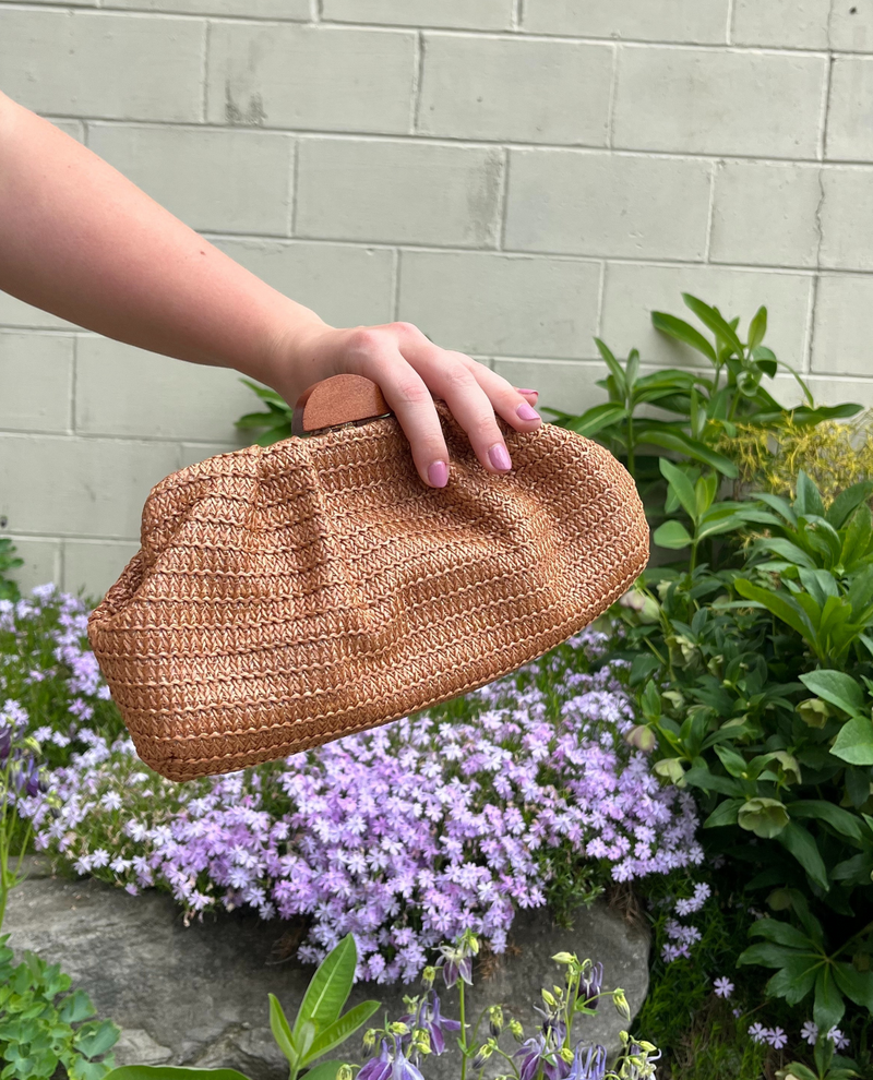 The perfect accessory for your next date night or special event. This woven clutch not only adds a touch of elegance to your outfit, but also features a chain option for easy carrying. Enhance your look with this versatile and stylish clutch.