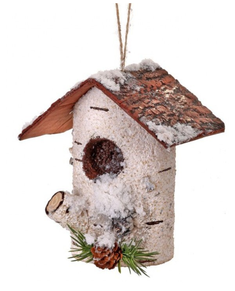 Bring woodland charm to your holiday décor with this delightful 7" faux birch log birdhouse ornament. Crafted to resemble a cozy natural birdhouse, it features authentic birch bark detailing that adds rustic elegance to any tree. Perfect for nature lovers and those who appreciate seasonal décor with character, this ornament celebrates the beauty of the outdoors. Hang it proudly as a reminder of peaceful woodland moments, or gift it to someone who treasures nature-inspired style.