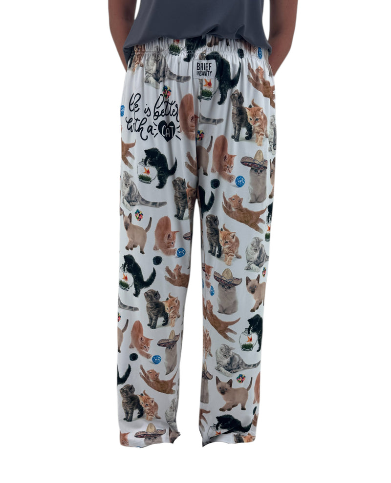 Experience ultimate comfort with the 7077P Life Is Better With a Cat Lounge Pant. Designed for relaxation, these pants offer a cozy fit perfect for unwinding at home. Whether you're spending time with your feline friend or enjoying a quiet day, these lounge pants provide softness and ease to keep you comfortable all day long. Embrace the simple joy of lounging in style and comfort.