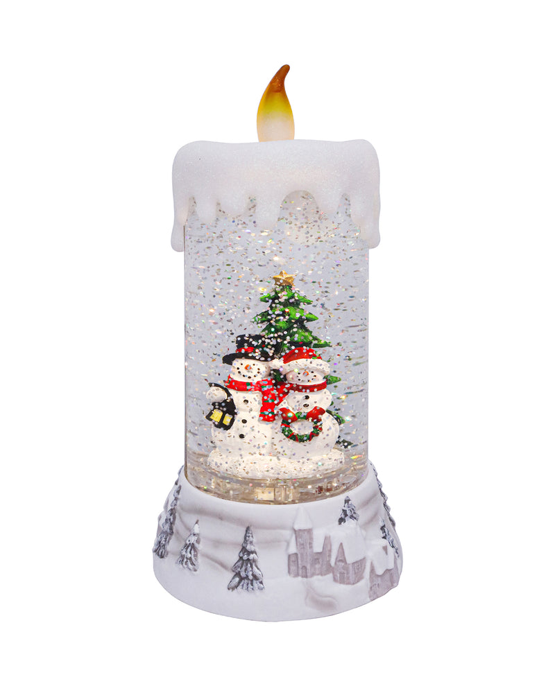 Bring festive charm to your home with the 8.5" Snowy Christmas Village Glitter Candle. Available in delightful styles like Snowman, Cardinal, Truck & Tree, and Angel, each artificial candle glows warmly while sparkling with glitter. Equipped with a 4-hour timer and powered by 3 AA batteries (not included), it offers easy, hassle-free holiday ambiance to brighten any room.