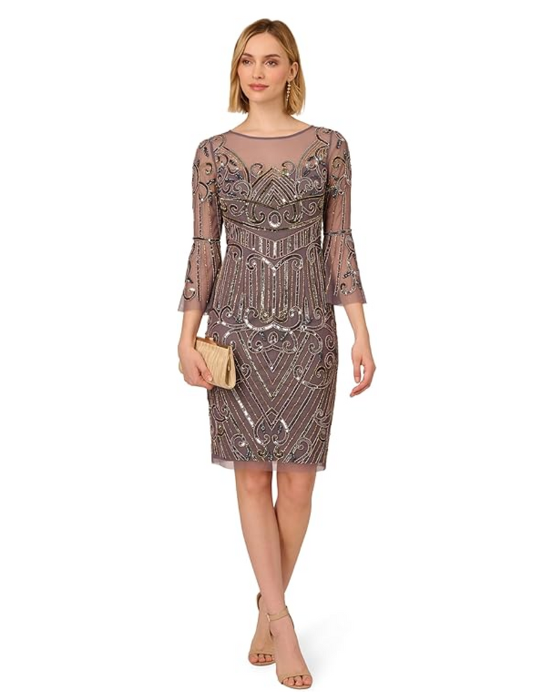 ADRIANNA PAPELL AP1E211434 BEADED BELL SLV DECO DRESS
