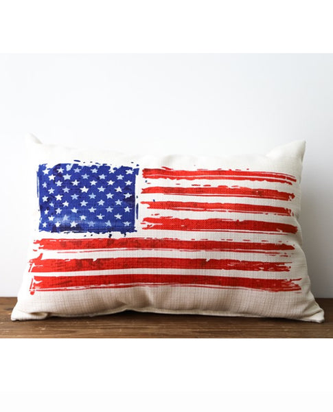 Patriotic Old Glory American flag lumbar pillow is designed and manufactured in Calhoun City, Mississippi. Little Birdie pillows are the perfect way to cozy up any space! All of our pillows are made from a soft yet durable polyester fabric, and arrive stuffed with poly-fill and sewn shut. Our designs are dyed directly into the fabric, so they won't peel or crack. Square pillows measure approximately 17 x 17” and lumbar pillows are approximately 20 x 14.” Add colored piping to any pillow to give it an extra pop! Pillows are machine washable (Cold water, Delicate Cycle- Fluff, and Air Dry Flat).