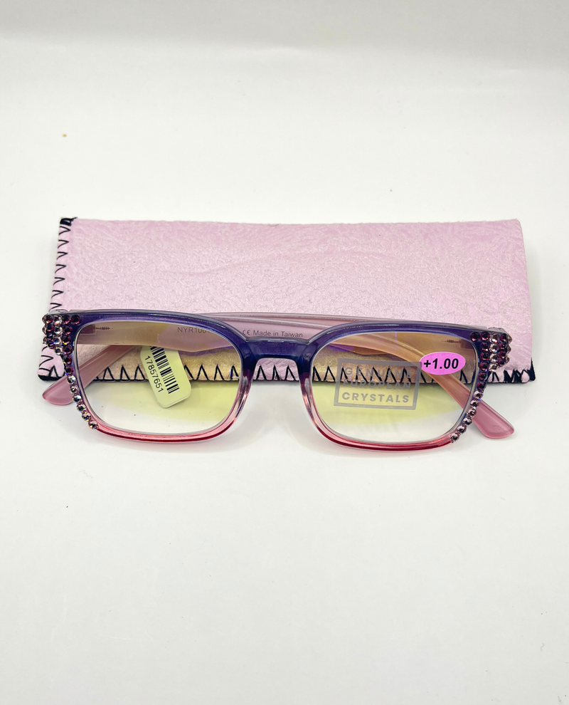 Add some sparkle to your reading with these BLING READER MCR1001 glasses. The frames have an ombre effect and are adorned with rhinestones. With a flexible stem and a protective case, you'll enjoy easy, stylish reading in comfort and safety.
