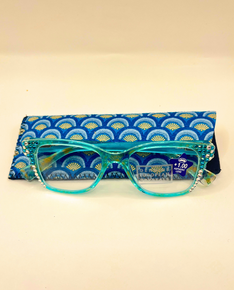 The BLING READER offers a reliable and fashionable solution when you're straining to see as you read. The adorable cat eye shape frames come in a fun turquoise color, which is further enhanced with rhinestones. These reading glasses include a lovely case, providing everything you need in one great set.
