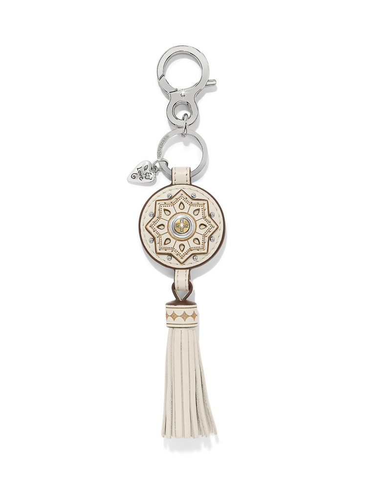 Let the sunshine in with this exquisitely crafted leather handbag fob, designed to add a touch of warmth and elegance to your bag. Backside reads, here comes the sun.