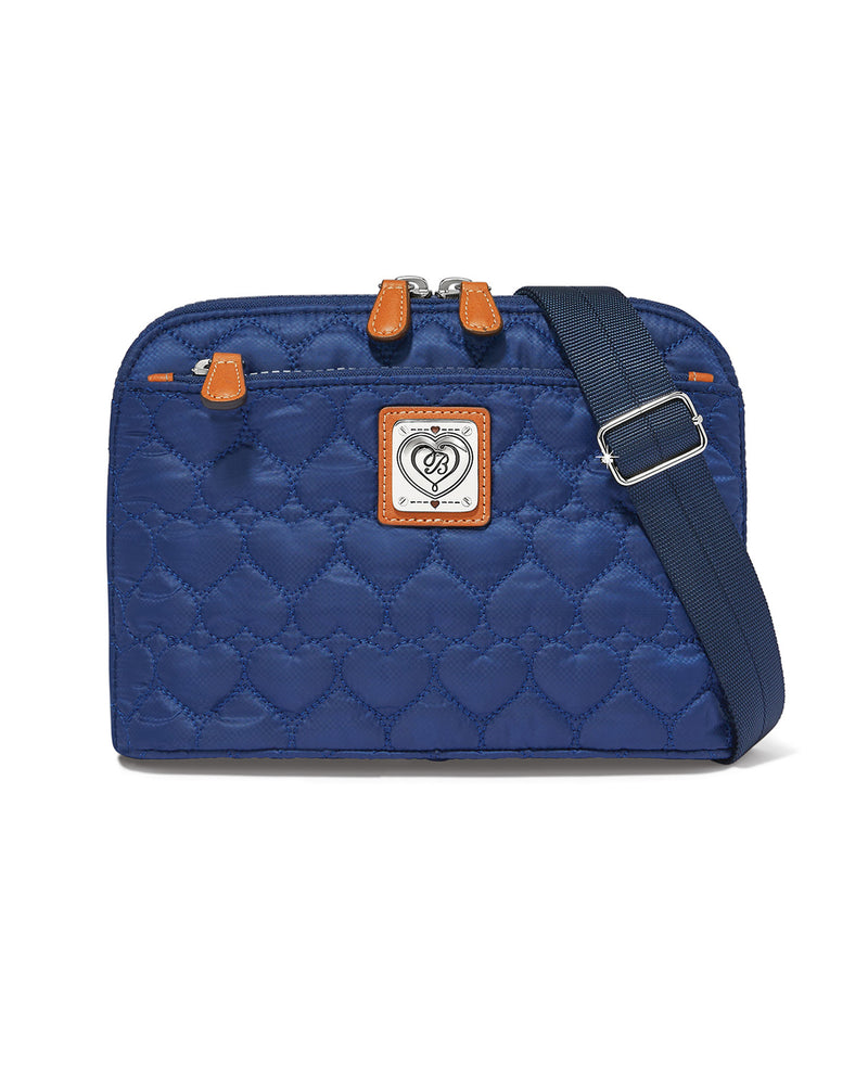 This featherweight that is quilted in heart-shaped nylon is adorable, rollable, packable and will bounce right back into shape. A secure zip top, 2 exterior and 4 interior pockets and 8 credit card slots/ID window make it ultra-practical. It has a detachable/adjustable crossbody strap.