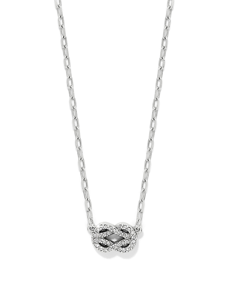 Drawing inspiration from the timeless Hercules knot, which is a symbol of strength and unity, this elegant petite necklace features a beautiful interplay of pavé detailing that artfully defines the iconic knot design. Exquisite craftsmanship and delicate, intricate construction gives it the look of fine jewelry.