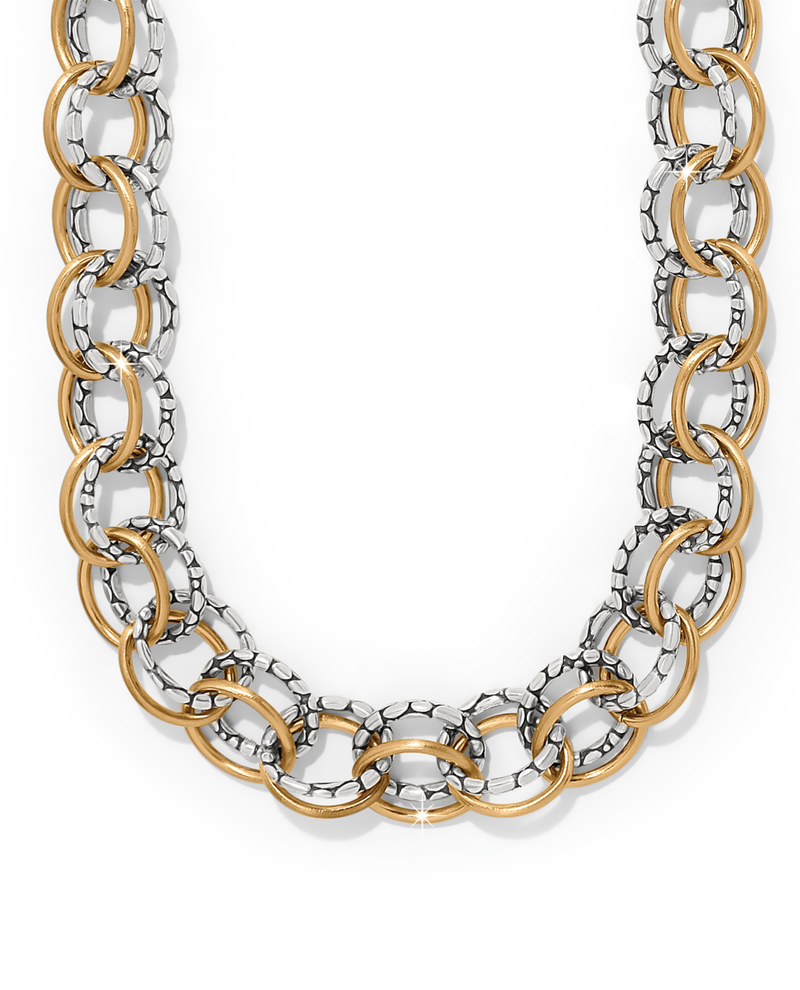 Inspired by 3000-year-old Balinese jewelry techniques, this pebble-textured necklace with modern chunky links is utterly timeless. In silver and gold, it goes with all your jewelry.