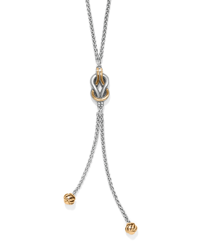 Elevate your everyday style with the Brighton JM0105 Interlock Harmony 2 Tone Lariat Necklace. This sophisticated piece features a striking two-tone design that seamlessly blends silver and gold tones, creating a versatile accessory that complements any wardrobe. The signature interlock detailing adds visual interest and dimension, while the lariat style offers a modern, elongated silhouette that flatters various necklines. Crafted with Brighton's renowned attention to quality, this necklace is designed to be a reliable companion for both casual and dressy occasions.