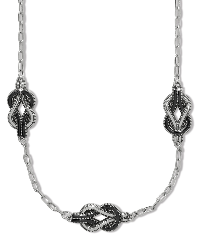 Elevate your everyday style with the Brighton JM0108 Interlock Harmony Black Trio Necklace. This sophisticated piece features three interlocking strands in sleek black, creating a modern yet timeless design that works beautifully with any outfit. The carefully crafted interlock detail adds visual interest and dimension, while the trio configuration offers versatility—wear it layered for impact or separated for understated elegance. Perfect for those who appreciate quality craftsmanship and contemporary jewelry that transitions seamlessly from day to night. A stunning addition to your collection that celebrates both style and substance.