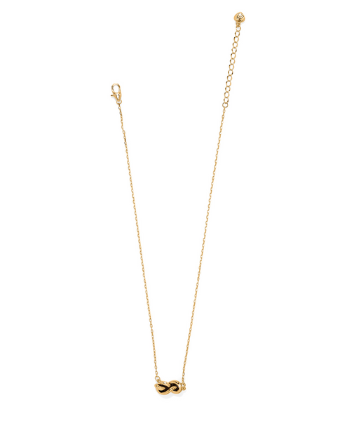 This clean, elegant design embraces modern minimalism, while showcasing intricate craftsmanship. Ultimately, knots remind us of the intricate ties that weave together our experiences and relationships. The petite east/west knot with a silver drop complements anything you wear.