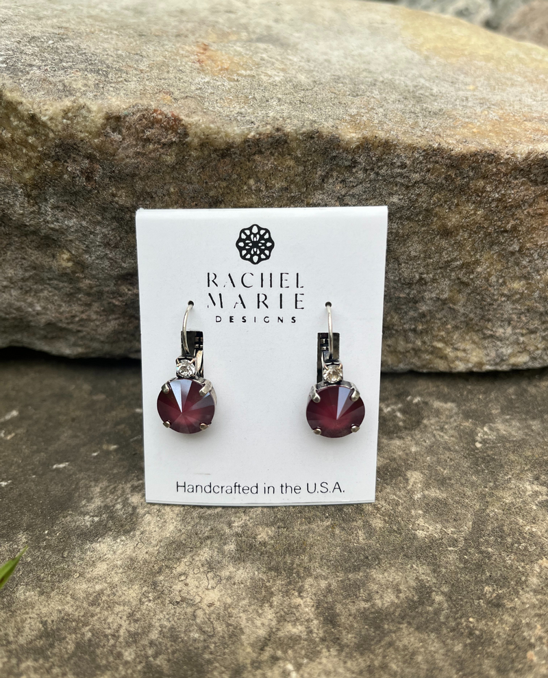 Rachel Marie pieces are locally made in Michigan using Swarovski crystals, as well as lead and nickel-free backings. In order to preserve the item at its highest quality, avoid direct contact with water, moisturizing creams, or perfume. This special piece is to be the last item you put on before leaving the house.
