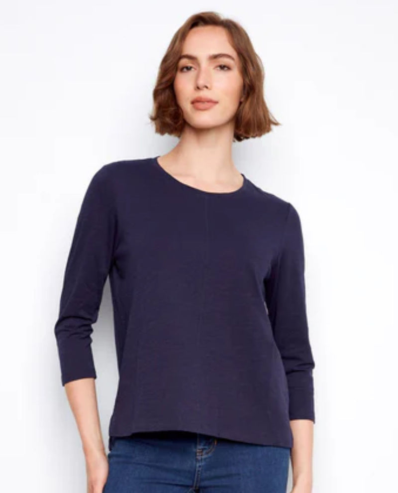 Organic Cotton Slub 3/4 Sleeve Knit Top With Front Seam Detail