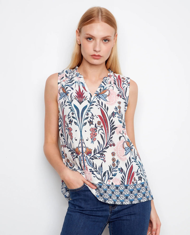 Elevate your wardrobe with this charming ruffle neck print top from Charlie B. The delicate ruffle detailing at the neckline adds feminine flair and visual interest, while the eye-catching print brings personality to any outfit. Perfect for layering or wearing solo, this versatile piece transitions seamlessly from casual days to dressed-up occasions. The thoughtful design ensures comfort and style in one effortless piece.