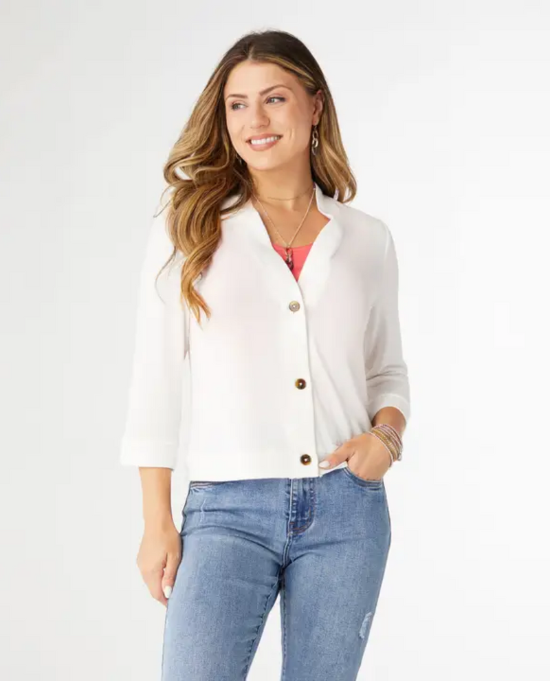 Stay cozy and stylish with the Anice 3/4 Sleeve Cardigan. This versatile piece features a button down front for easy wear and a relaxed fit that's perfect for everyday wear. Pair it with your favorite jeans and a simple tee for a casual look, or dress it up with a skirt and heels for a night out. No matter how you style it, this cardigan is sure to become a favorite in your wardrobe. Materials: Viscose/Spandex. Perfect for backyard BBQs, 4th of July and all summer long!