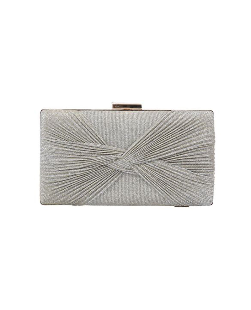 Elevate your evening look with the Shimmer Knotted Evening Clutch. Featuring a delicate chain handle, it offers the versatility to wear crossbody for hands-free convenience. Its shimmering finish adds a touch of elegance, making it the perfect accessory for special occasions. Compact yet stylish, this clutch ensures you carry your essentials effortlessly while shining all night..
