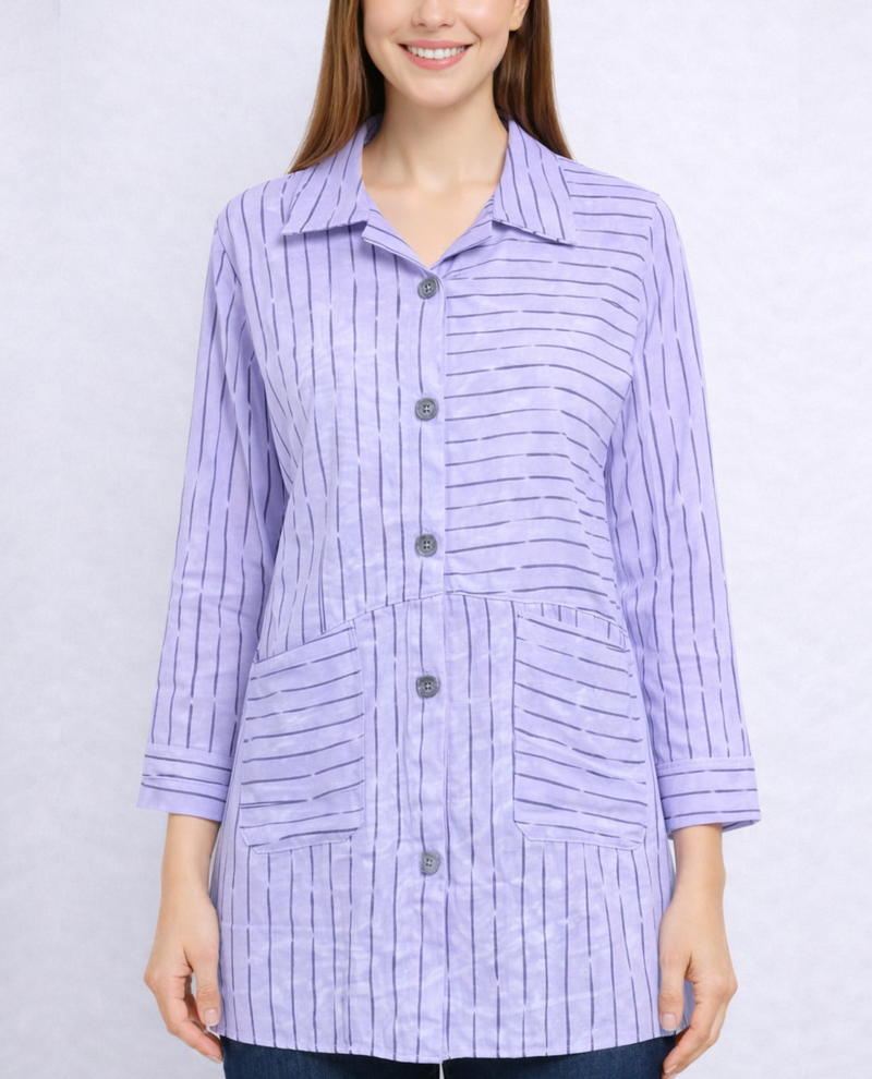 Elevate your everyday wardrobe with this charming striped blouse that combines style and practicality. The classic stripe pattern offers versatile appeal, while thoughtfully placed pockets add functional convenience for your daily essentials. Crafted with attention to detail, this piece transitions seamlessly from casual outings to professional settings. Whether you're dressing up for work or keeping it relaxed on the weekend, this blouse is a reliable choice that supports your personal style journey. A wardrobe staple that works as hard as you do.