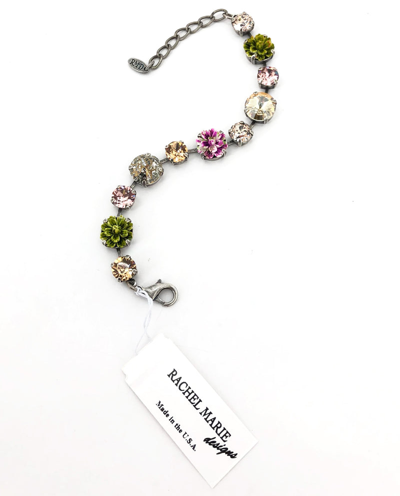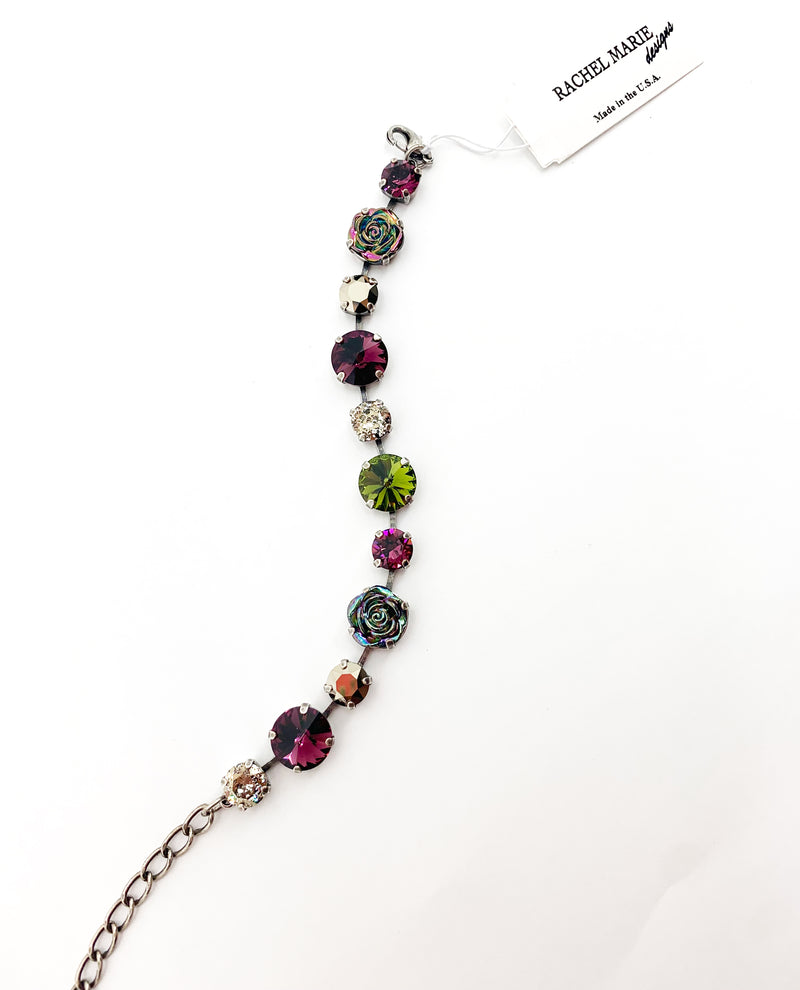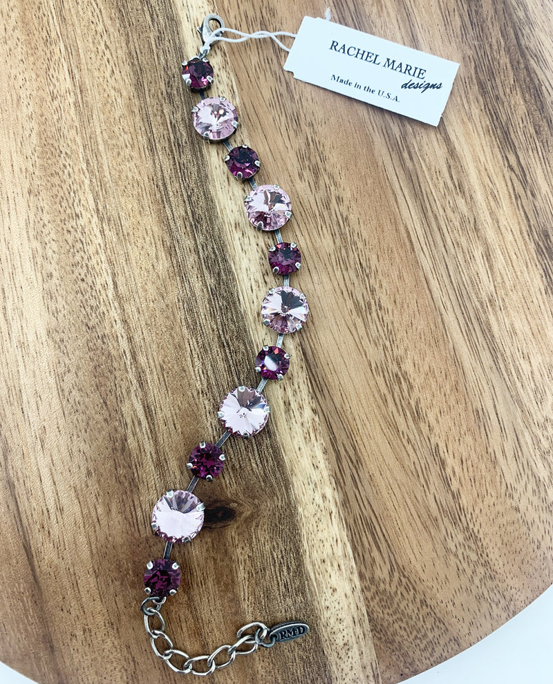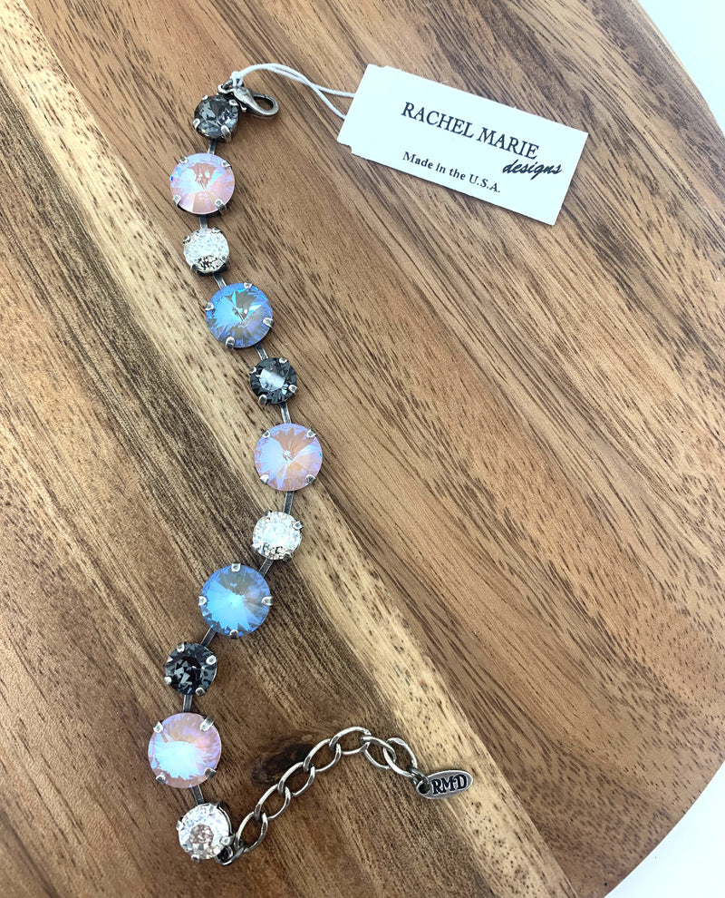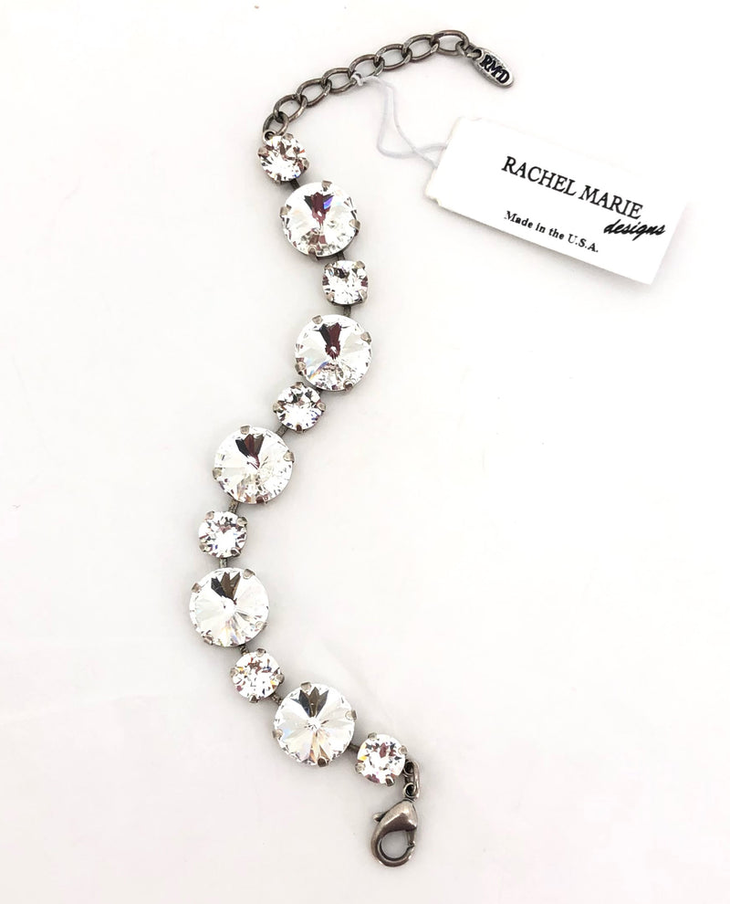Rachel Marie pieces are locally made in Michigan using Swarovski crystals, as well as lead and nickel-free materials. In order to preserve the item at its highest quality, avoid direct contact with water, moisturizing creams, or perfume. This special piece is to be the last item you put on before leaving the house.Live in sparkle. USA Made.Final Sale