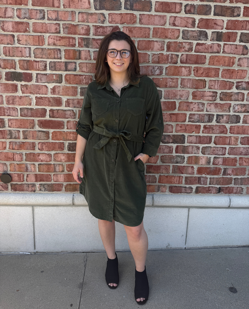 The Dash Corduroy Button Down Dress blends classic style with cozy comfort. Crafted from soft corduroy, this dress features a button-down front for easy wear and adjustable fit. Its versatile silhouette is perfect for layering or wearing alone, making it an ideal choice for effortless everyday style.