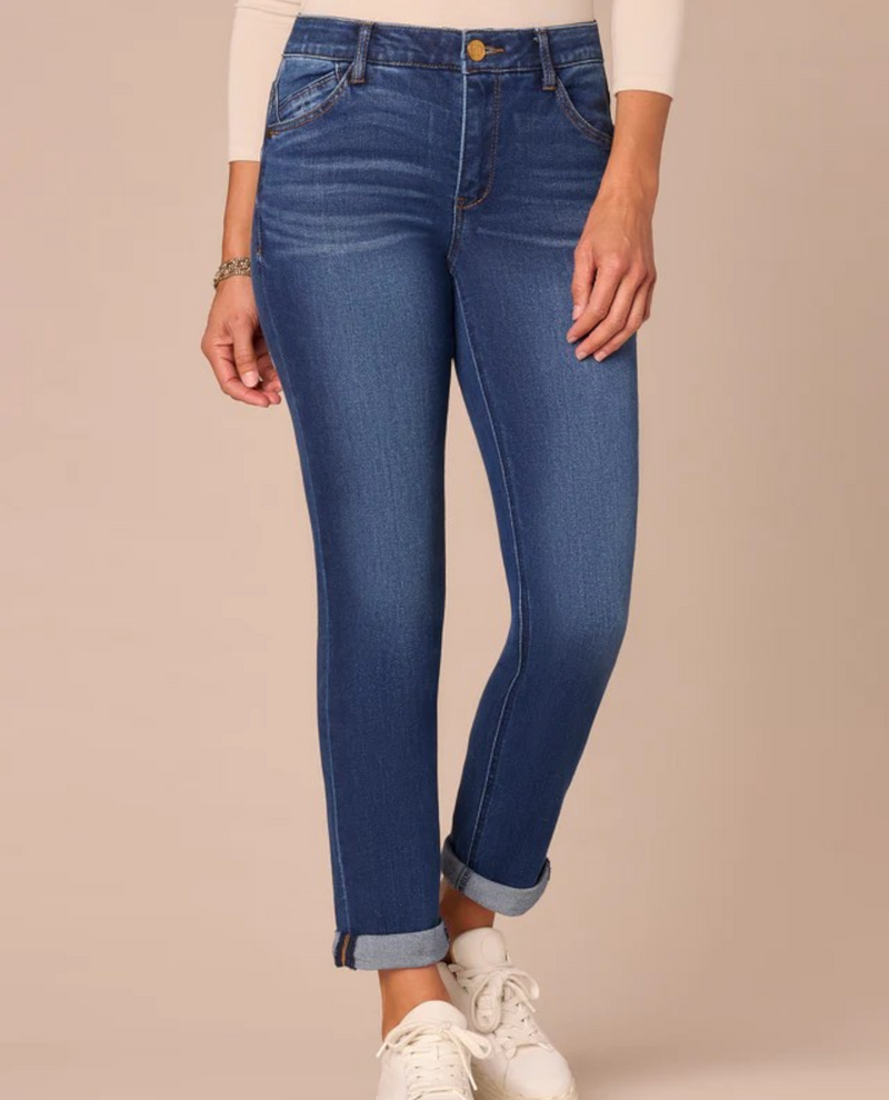 Effortless style meets comfort in these Democracy cuffed girlfriend jeans. Designed with a relaxed fit through the hip and thigh, they feature a flattering cuff detail that adds a playful touch to your everyday look. The classic blue denim construction offers durability and timeless appeal, while the girlfriend silhouette provides that perfect balance between fitted and comfortable. Pair them with sneakers for casual outings or dress them up with heels for a night out. A wardrobe essential that works as hard as you do.