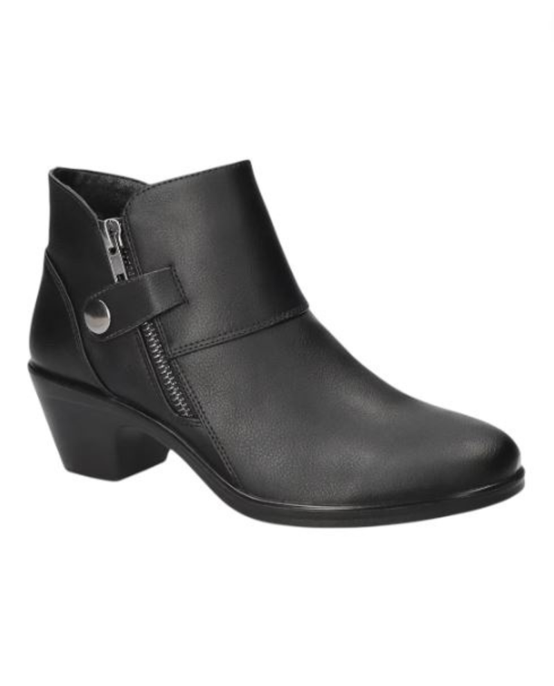 Step confidently with the Easy Street 31-7101 Fritzi Ankle Bootie. Designed for comfort and style, this bootie features a supportive sole and a sleek silhouette that complements any outfit. An inside zipper makes it easy to take it on or off, while an outside zipper and snap add decorative detail. Whether you're heading to work or out for the evening, it provides the reliable fit and all-day comfort you need to keep moving with ease.