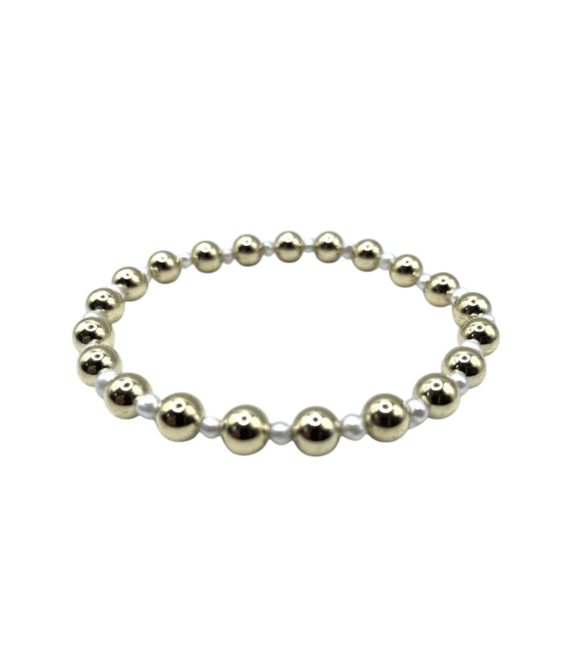 14k gold filled beads with fresh water pearls stretch bracelet.  Wear single or stack it.  Part of our Erin Gray waterproof collection.