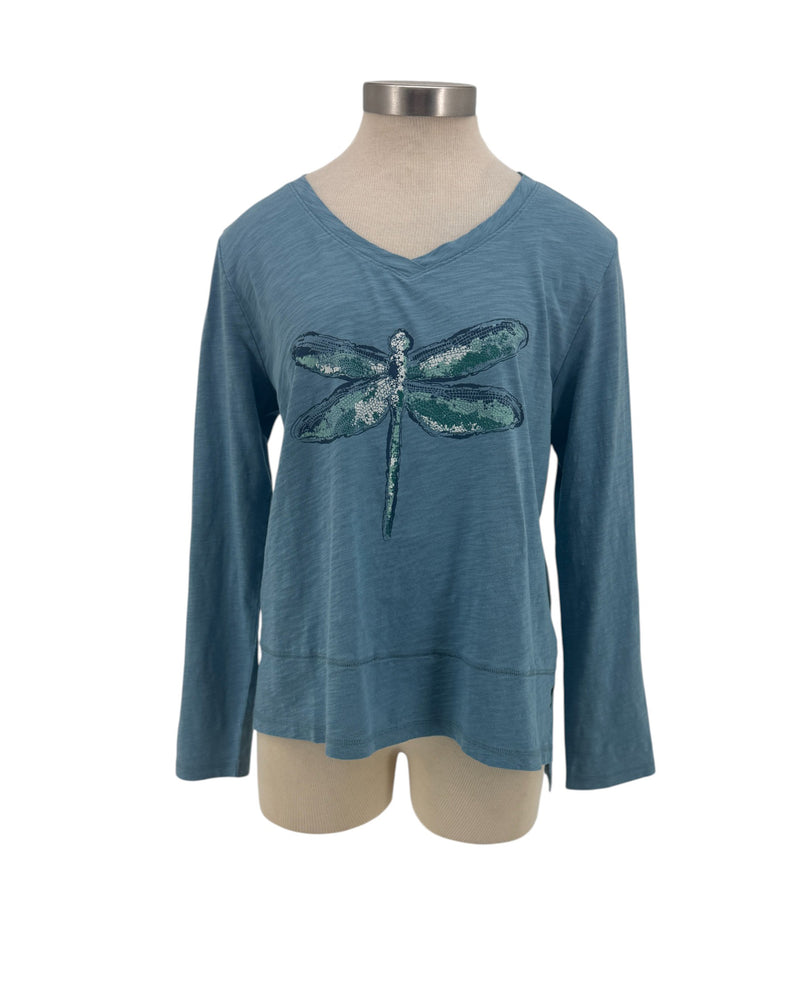 The Escape by Habitat Dragonfly Tee offers a great fit with and a flattering V-neck. Perfect for everyday wear, this soft cotton tee combines style and ease, making it a versatile addition to your wardrobe. In addition to the modest neckline, the stair step hem provides additional coverage.
