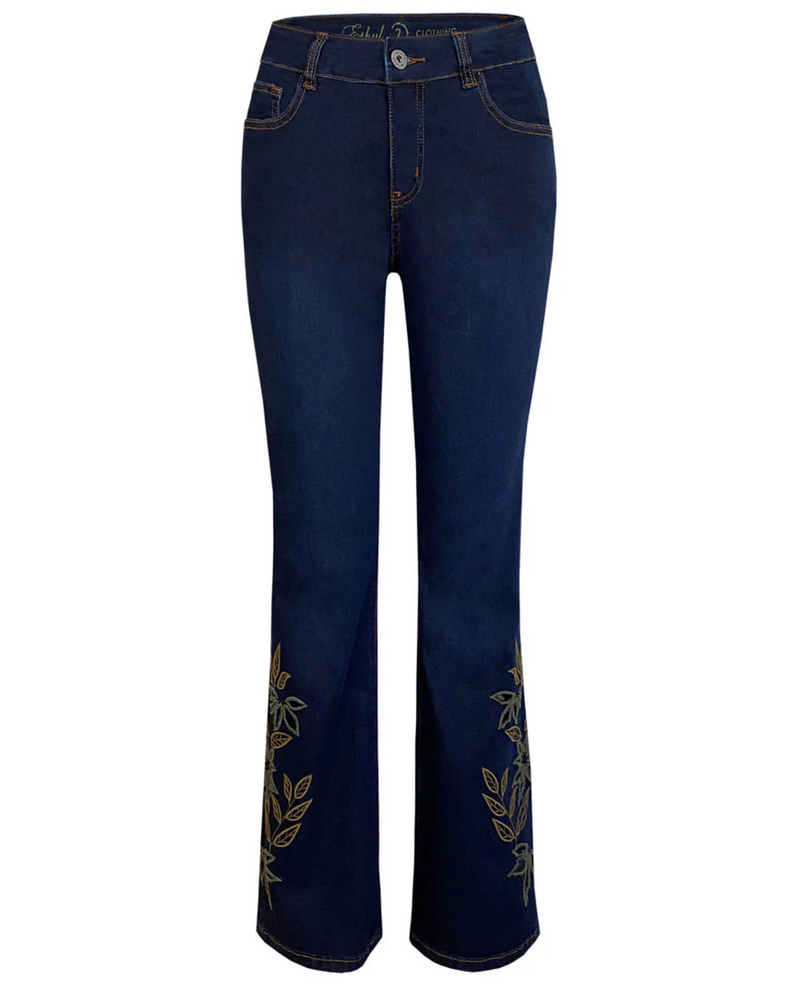 These ETHYL Z6F2092 Boot Cut Jeans combine classic style with delicate embroidery for a unique look. The boot cut design offers a flattering fit that pairs perfectly with boots or sneakers, while the embroidered details add subtle charm. Made for comfort and style, these jeans will seamlessly fit into your everyday wardrobe.
