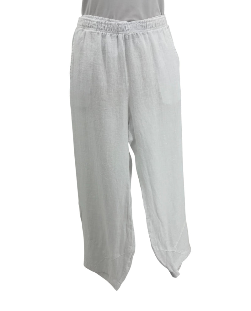 This 100% pre-shrunk linen wide leg ankle pant has a darling tulip hem and is both comfy and trendy. The elastic waist will ensure comfort throughout the day, and side pockets add great function. They look cute with everything from a flat shoe to a strappy sandal.