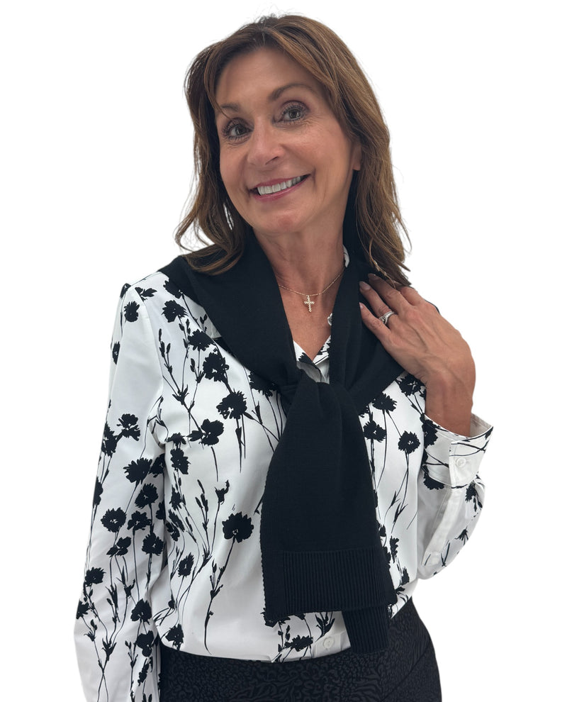 Stay cozy and stylish with the Preppy Mock Sweater Wrap. Designed for effortless layering, this wrap a little extra warmth with a refined, preppy look. It provides the look of a sweater wrapped around your neck without the fuss of positioning the back. Additionally, one side of the front has a hole to slide the other "faux arm" through. Easy to wear and versatile, it complements any wardrobe.