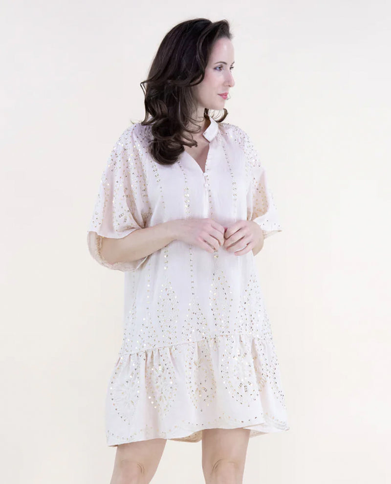Elevate your style with this stunning embroidered sequin drop waist mini dress. The flattering silhouette creates a chic, feminine look while the dazzling sequin embellishments catch the light with every movement. Perfect for special occasions, parties, or whenever you want to make a memorable impression. Comfortable yet glamorous, this dress combines sophistication with playful charm.