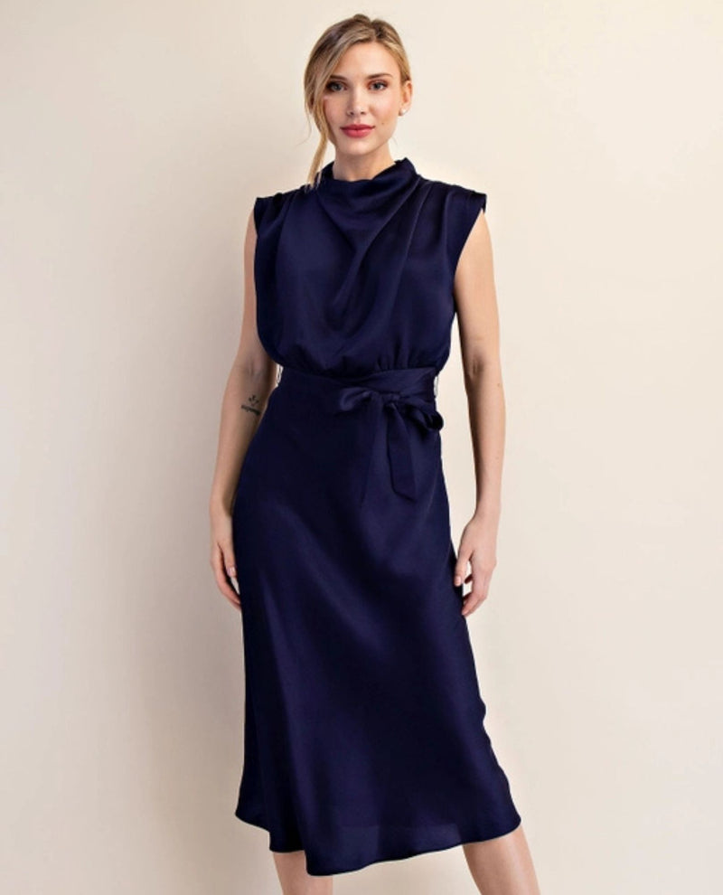 Elevate your wardrobe with the Cowl Neck Midi Dress, a sophisticated piece designed to make you feel confident and beautiful. The graceful cowl neckline drapes elegantly, creating a flattering silhouette that works for both special occasions and elevated everyday wear. This midi-length dress strikes the perfect balance between modest and chic, offering versatile styling options that transition seamlessly from day to night. Whether you're heading to a dinner date or a professional event, this dress supports your desire to look polished and put-together with timeless elegance.