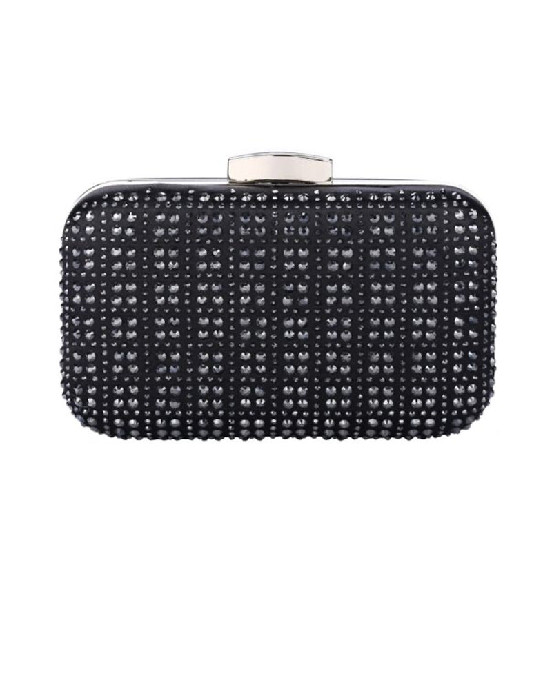 This elegant box clutch adorned with shimmering stones adds a touch of sparkle to any outfit. Its compact design ensures convenience while providing just enough space for essentials. Perfect for special occasions, it combines style and functionality to complement your look effortlessly.