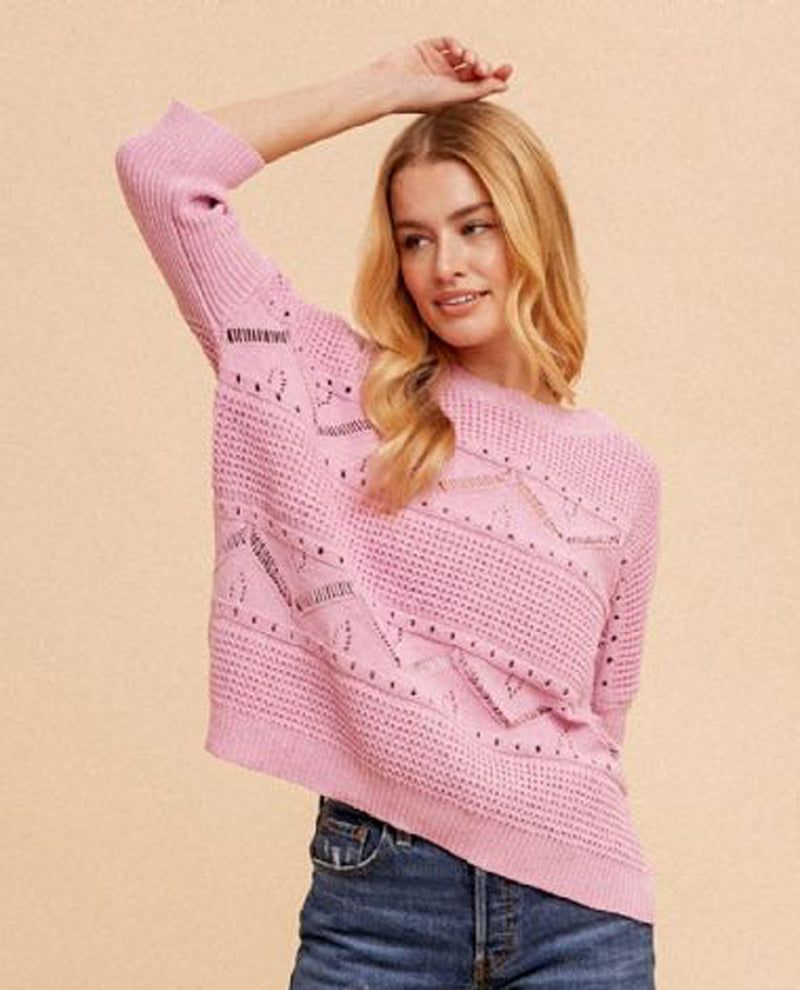 Elevate your wardrobe with the HEM & THREAD 35515 Crochet Dolman Sweater. This oversized sweater features an open crochet design that adds a touch of femininity and texture to any outfit. Made with quality materials, you can stay cozy and stylish all day long.