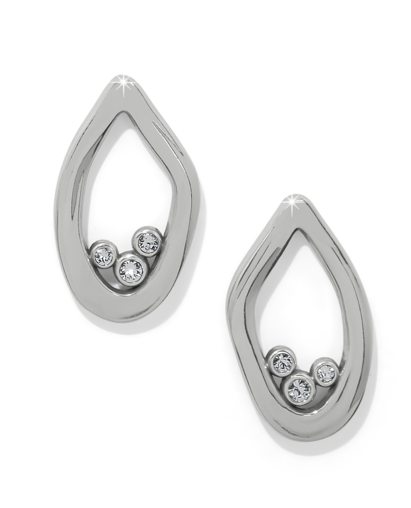 The Cascade Lumina Silver Post Earring showcases an open asymmetrical design that captures the graceful movement collectors adore in the Cascade collection. Polished silver catches the light beautifully, while three luminous, clear crystals rest elegantly within the open space, creating dimension and sparkle. These versatile earrings blend modern sophistication with timeless appeal, making them a treasured addition to any jewelry wardrobe.