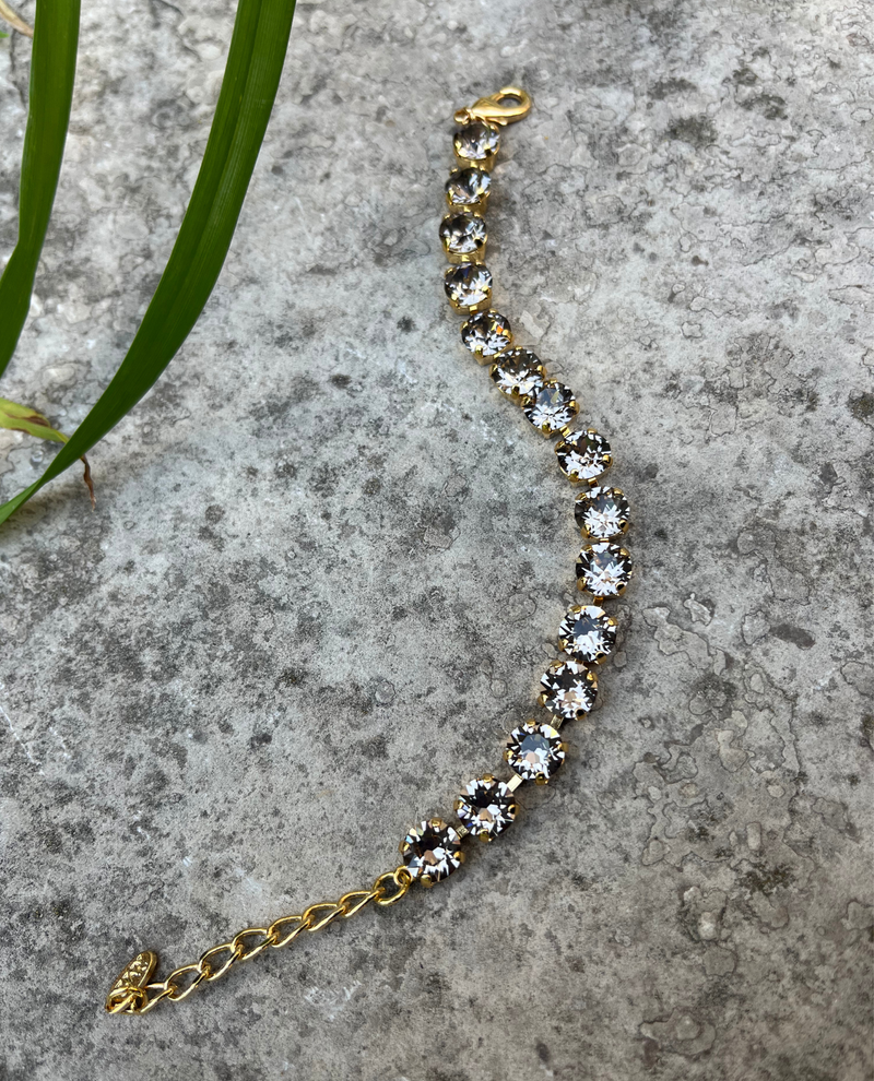 Rachel Marie pieces are locally made in Michigan using Swarovski crystals, as well as lead and nickel-free backings. In order to preserve the item at its highest quality, avoid direct contact with water, moisturizing creams, or perfume. This special piece is to be the last item you put on before leaving the house.