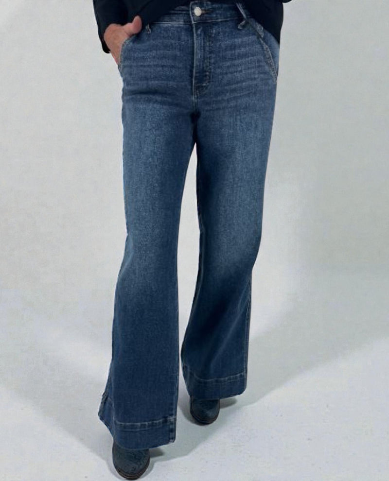 These Judy Blue Retro Wide Jeans blend classic style with a comfortable fit. Featuring a relaxed, wide-leg cut, they offer freedom of movement and a flattering silhouette. Crafted with quality denim, these trousers provide durability while maintaining a soft, worn-in feel. Perfect for everyday wear, they bring a timeless, vintage-inspired look to your wardrobe.