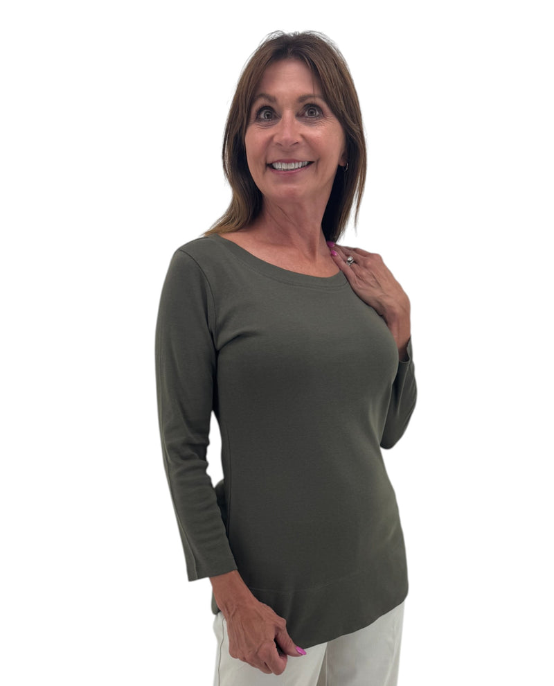 The Keren Hart 155 3/4 Sleeve Scoop Neck Top combines comfort and style with its versatile design. Featuring three-quarter sleeves and a flattering scoop neckline, this top is perfect for layering or wearing on its own. Its lightweight fabric ensures all-day comfort, making it an ideal choice for both casual and office wear. Enhance your wardrobe with this effortlessly stylish piece that supports your everyday needs.