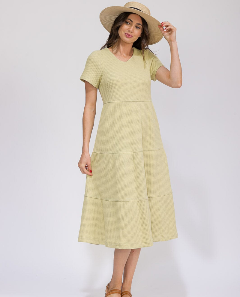 Elevate your everyday wardrobe with this charming tiered waffle midi dress from LEIA & CO. The textured waffle fabric adds visual interest and dimension, while the flowing tiered silhouette creates a flattering, comfortable fit that moves with you. Perfect for casual outings, weekend brunches, or layered styling, this versatile piece transitions seamlessly from season to season. The midi length offers modest coverage with modern appeal, making it an essential addition to any closet. Embrace effortless style and confidence in a dress designed to make you feel your best.
