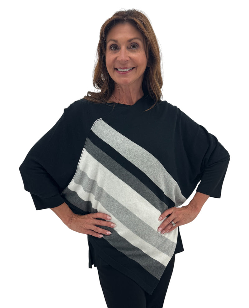 Stay cozy and stylish with the LEO & NICOLE 68417 Knit Poncho featuring elegant stripes. Its soft knit fabric provides warmth and comfort, making it perfect for layering on cooler days. The relaxed fit allows easy movement while adding a chic, effortless touch to any outfit. This poncho is an ideal choice for those seeking both comfort and a fashionable look.