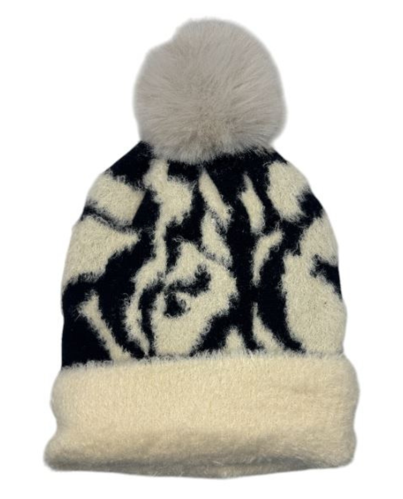 Stay warm and stylish with this cozy lined pompom beanie. Featuring a classic black and ivory color combination, it's the perfect accessory for chilly days. The soft lining keeps your head comfortable, while the playful pompom adds a touch of personality to any winter outfit. Whether you're heading out for errands or enjoying outdoor adventures, this versatile beanie is your go-to choice for warmth and charm.