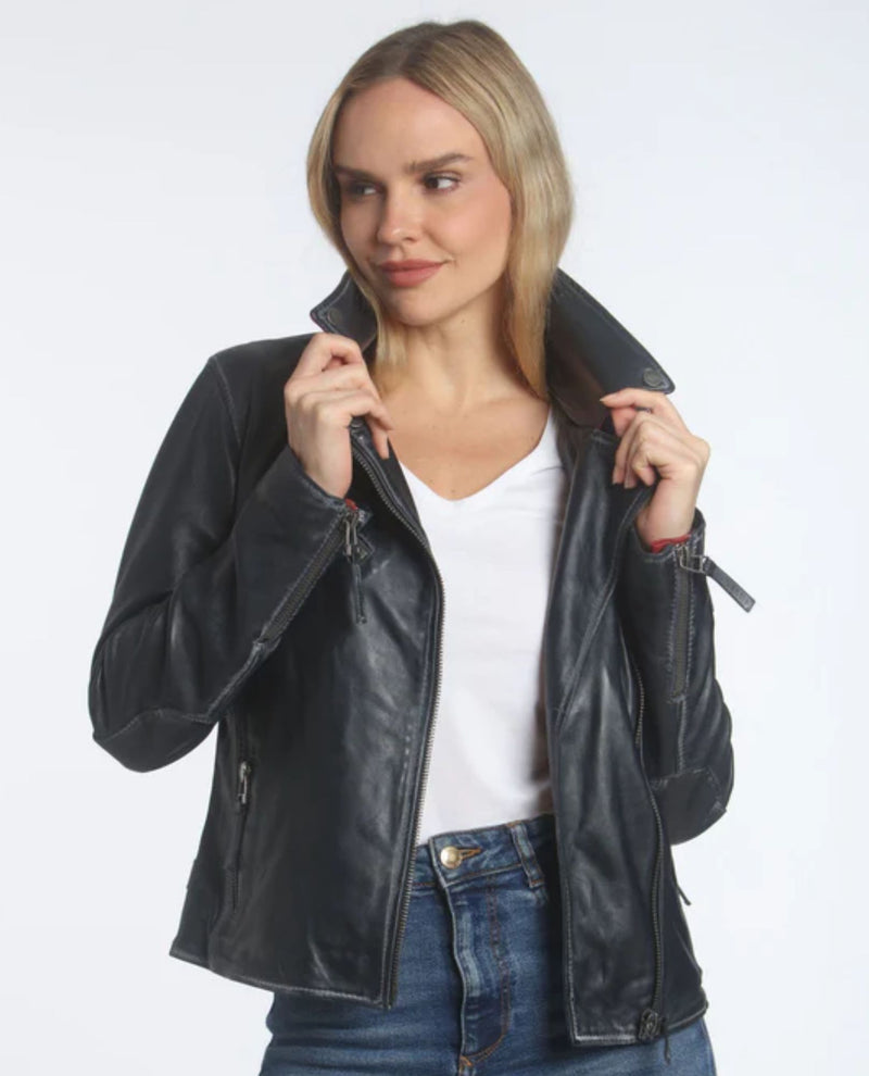 Elevate your wardrobe with this striking MAURITIUS BETSY250 leather jacket, featuring a bold USA flag patch that makes a statement. Crafted from premium 100% leather with a comfortable cotton and recycled polyester lining, this jacket combines durability with eco-conscious design. Perfect for adding edge to any outfit, it's available in missy sizes 7/8 through 11/12. A timeless piece that transitions seamlessly from casual to dressed-up occasions.