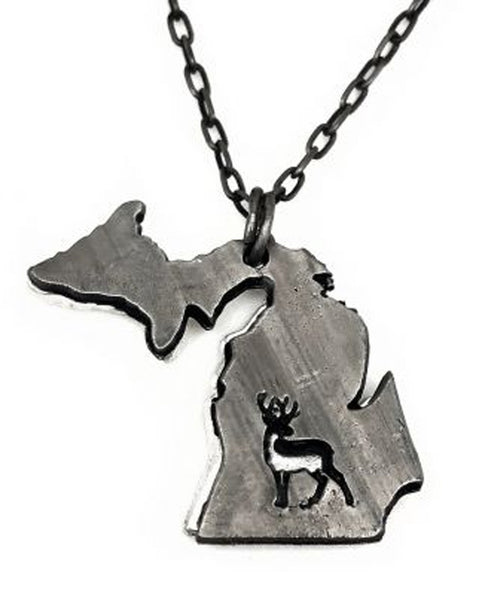 Michigan Necklace. 18" long with 2" extension. with Deer