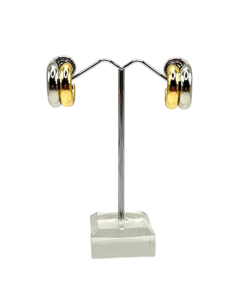 Elevate your everyday style with these versatile gold and silver hoop earrings. Perfect for both casual and formal occasions, they add a touch of elegance to any outfit. The dual-tone design offers maximum flexibility, complementing whatever jewelry you're already wearing. Lightweight and comfortable for all-day wear.