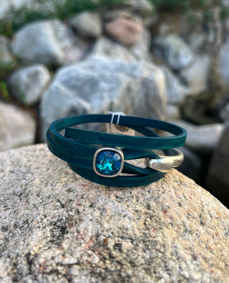 Rachel Marie pieces are locally made in Michigan using Swarovski crystals, as well as lead and nickel-free materials. In order to preserve the item at its highest quality, avoid direct contact with water, moisturizing creams, or perfume. This special piece is to be the last item you put on before leaving the house.Live in sparkle. USA Made.