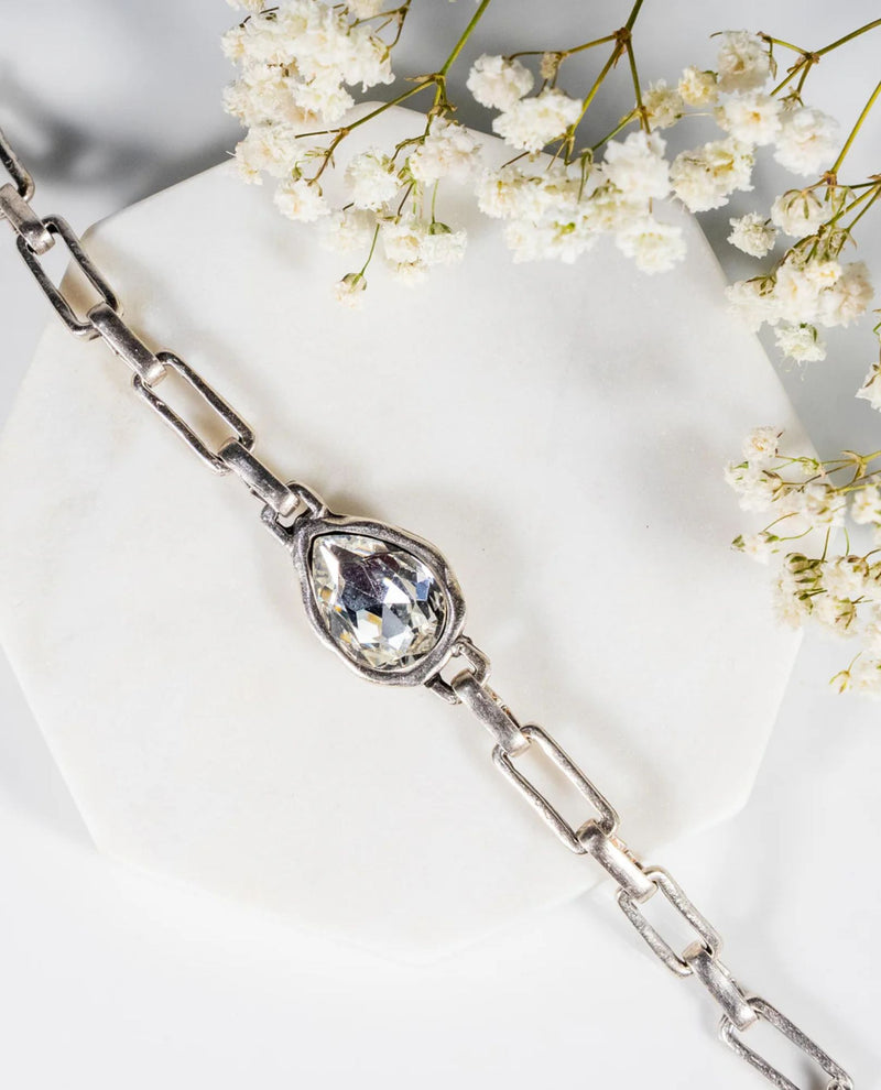 Rachel Marie pieces are locally made in Michigan using Swarovski crystals, as well as lead and nickel-free backings. In order to preserve the item at its highest quality, avoid direct contact with water, moisturizing creams, or perfume. This special piece is to be the last item you put on before leaving the house.