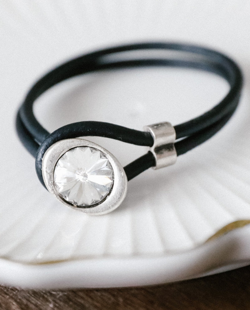 Rachel Marie's pieces are locally made in Michigan using Swarovski crystals, as well as lead and nickel-free backings. To preserve the item at its highest quality, avoid direct contact with water, moisturizing creams, and perfume. This special piece is to be the last item you put on before leaving the house.